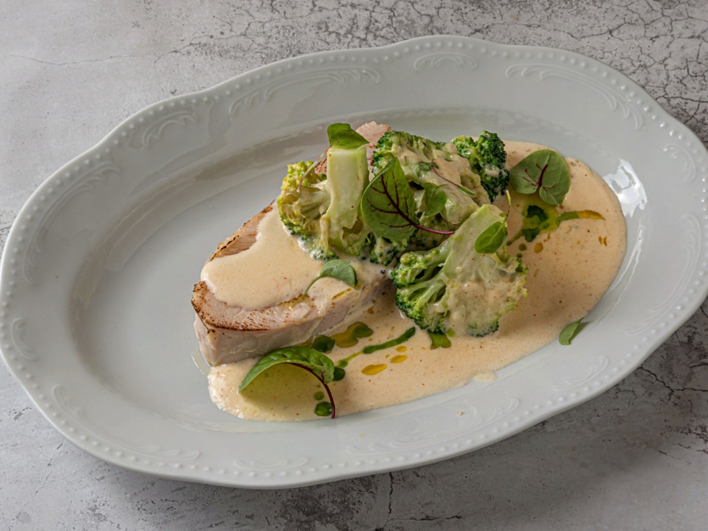 Индейка sous-vide с брокколи в сливочно-сырном соусе