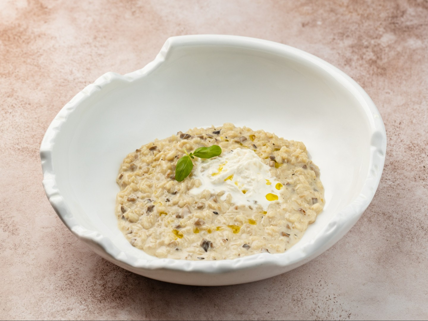 Ризотто, страчателла, белые грибы, сливочный соус